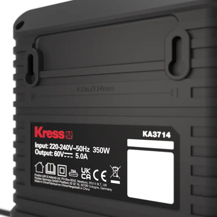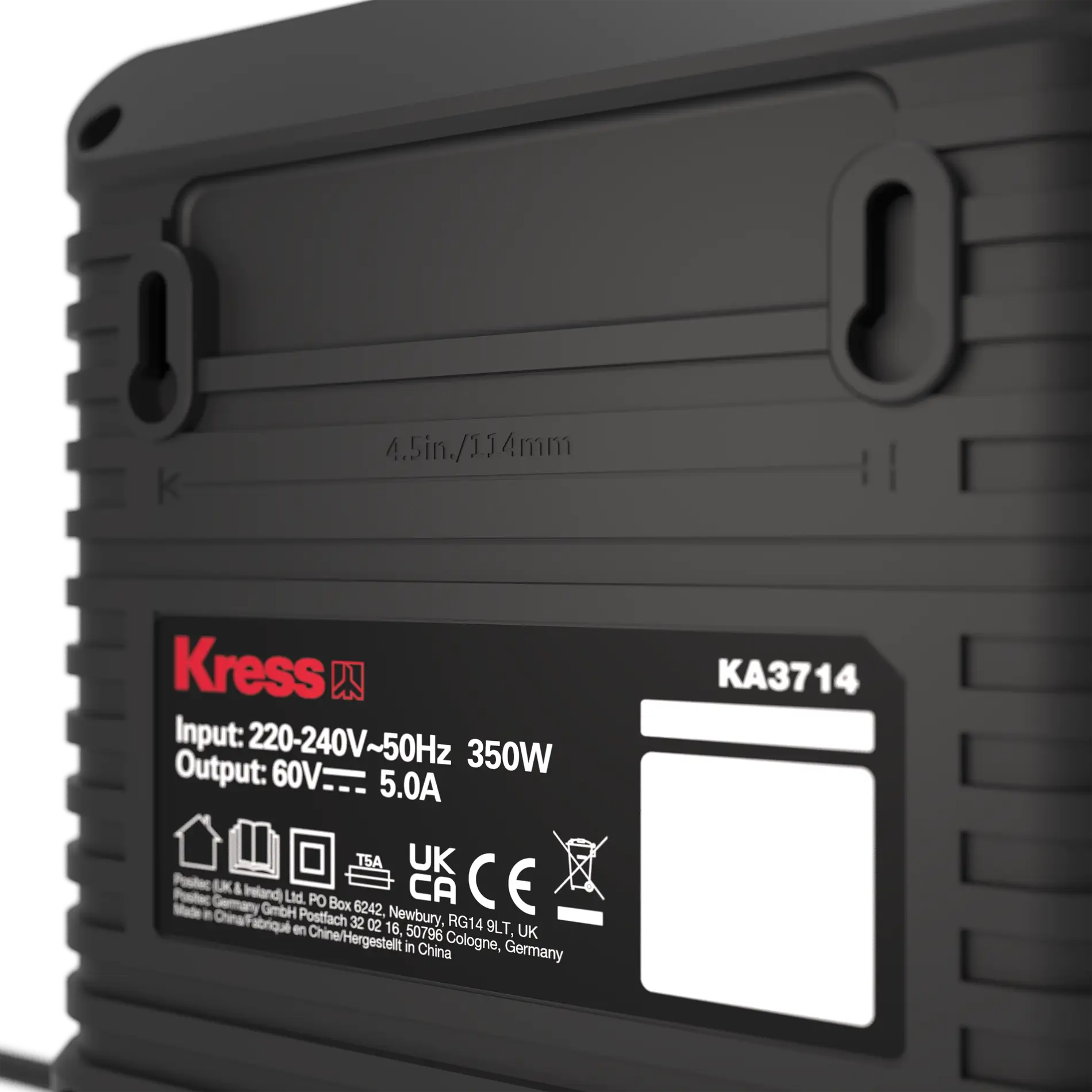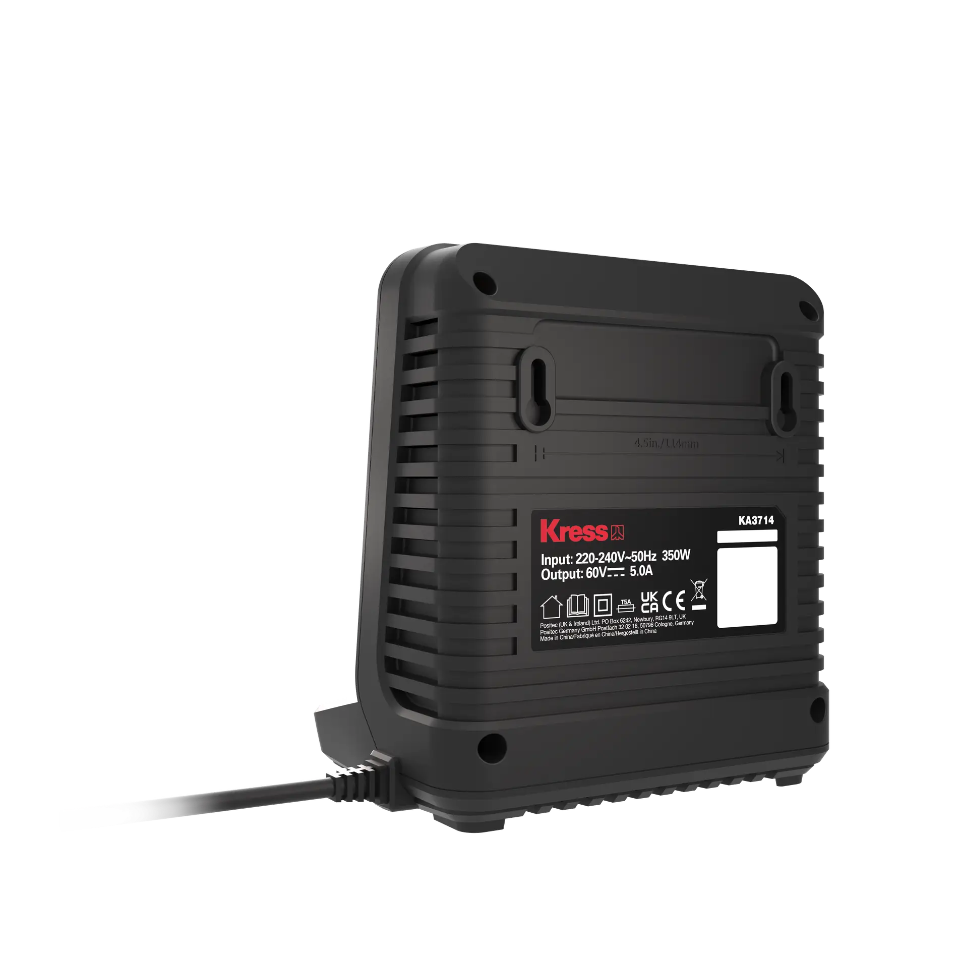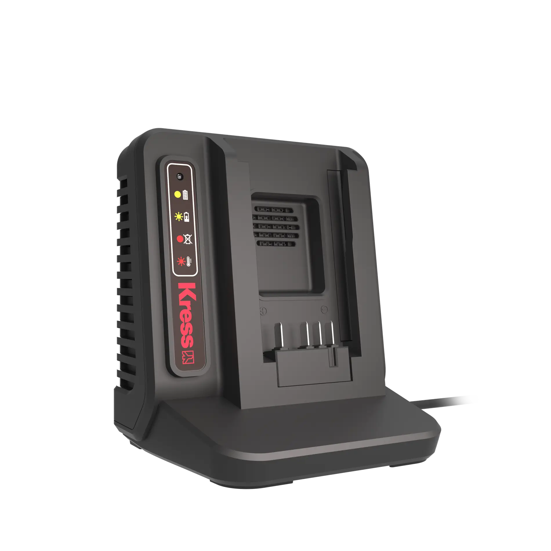 Kress Professionell 60 V 3A-laddare för snabb och säker laddning av alla Kress 60 V-batterier. Luftkylningssystem minimerar stilleståndstiden och möjliggör kortare laddningscykler. Kompakt design med väggmonteringsmöjlighet och inbyggd feldiagnos för trygg daglig användning.