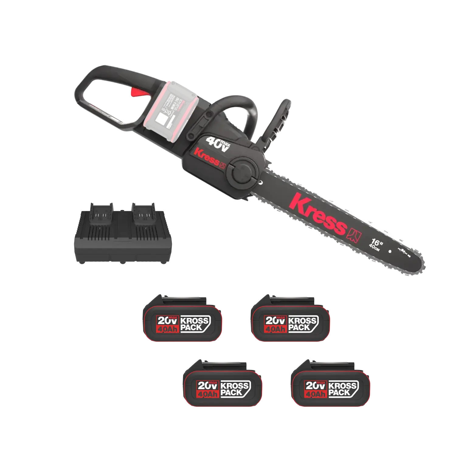 Kress Vårkampanj: 40 V 40cm Motorsåg + 4 Batterier + Laddare
